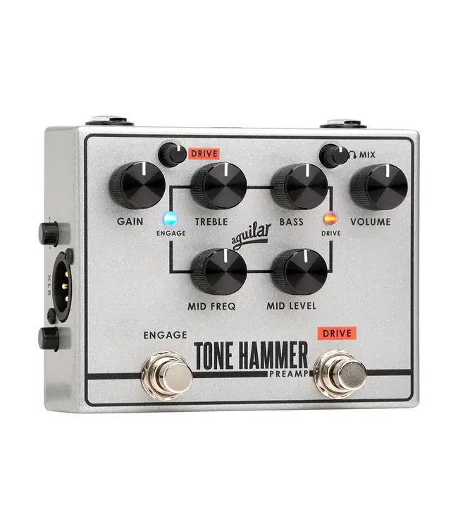 To give this tone shaping unit the ultimate flexibility Aguilar introduces their proprietary Adaptive Gain Shaping circuitry (AGS). AGS allows the player to kick in an additional gain structure and EQ with the “stomp” of a button. You can now go from modern slap sounds to vintage or overdriven. 18 volt operation gives the Tone Hammer® plenty of headroom to reproduce the most dynamic playing style. Separate GAIN and MASTER controls allow you to dial in just the right gain structure for any instrument.