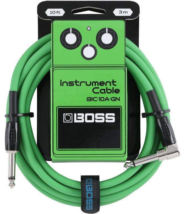 BOSS 10 Foot Instrument Cable Black, Straight/Angled - Green