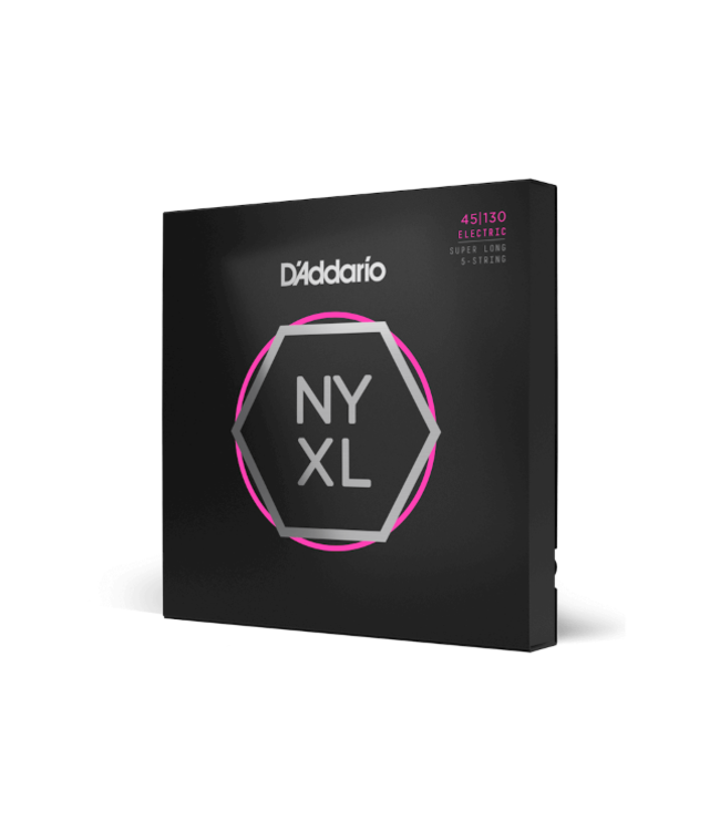 NYXL bass guitar strings thump harder, bend farther and sound thicker than any bass string you’ve played before. As D'Addario's premium uncoated bass string, NYXL bass strings provide higher break strength, enhanced tuning stability, and accentuated harmonics where it counts. Using a NY Steel core, Fusion Twist technology, and premium nickel-plated steel wrap wire, with a reengineered core-to-wrap ratio, NYXL bass guitar strings deliver extra versatility, familiar feel, and a boosted tone that’ll expand the scope of your low-end. Made for 5-string basses, this 45-130 Regular Light Super Long Scale set provides players with an extremely versatile, super long scale string, in D'Addario's most popular string gauge.