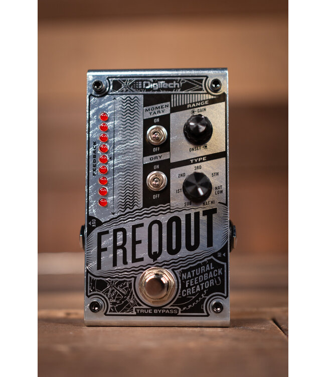 The DigiTech FreqOut Natural Feedback Creator allows you to get sweet, natural feedback at any volume, with or without distortion. The FreqOut is perfect for situations where volume must be controlled like in the studio, with in ear monitors, or low-volume performance and practice. However, the FreqOut can also be used at gig volume to focus out-of-control feedback on a preferred harmonic at any stage position. The FreqOut uses a 9VDC power supply to easily integrate into your existing pedalboard.