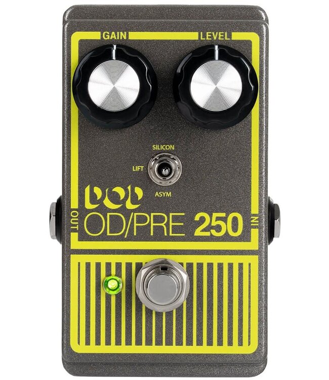 The DOD 250-X 10th Edition Overdrive/Preamp is a versatile take on the classic DOD 250 circuit, blending the beloved gritty overdrive tone with enhanced flexibility for modern players. It delivers rich harmonic breakup and smooth gain that can serve as everything from a warm boost to a saturated overdrive, making it equally useful as a standalone effect or as a preamp into an amp. With intuitive Gain and Level controls plus a bright, touch-sensitive response, the 250-X lets your playing dynamics and guitar’s voice shine through while adding character and drive. Built in a rugged, road-ready enclosure with true bypass switching to preserve your tone, the 10th Edition celebrates the legacy of the original while offering refined performance for today’s pedalboards.
