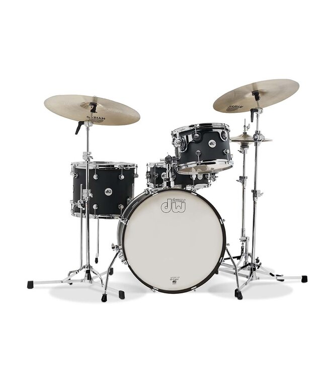 Review Drum Workshop DW Design Series Frequent Flyer 4-Piece Maple Shell Pack, Black Satin Lacquer w/Chrome Hardware; 8x12, 11x14, 12x20, 5x14