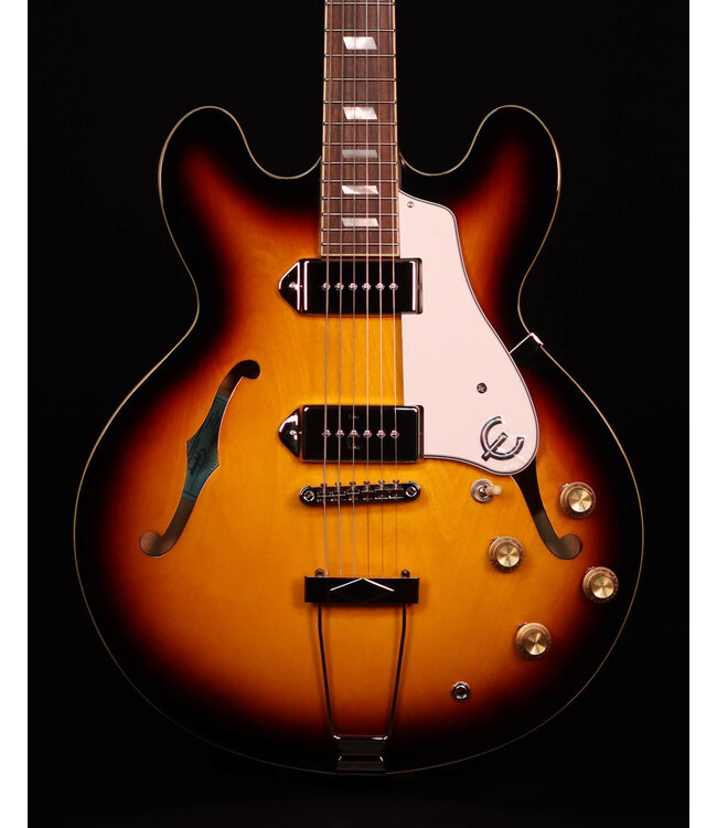 The Epiphone Casino is one of the most iconic semi-hollow guitars ever made—famous for its bright, open tone and unmistakable chime. The fully hollow ES-style body, slim comfortable neck, and a pair of vintage-voiced P-90 Dogear pickups create a lively, resonant character that responds beautifully to touch and dynamics. Finished in Vintage Sunburst, this Casino captures the classic look and sound that defined countless legendary recordings and performances.