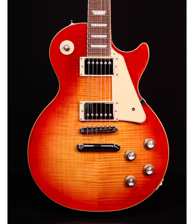 The Epiphone Les Paul Standard 60s from the Inspired by Gibson Collection captures the iconic look, feel, and tone that defined the golden era of electric guitars. Built with a classic mahogany body topped with a maple cap, this guitar delivers the rich warmth, sustain, and bite that made the original 1960s Les Pauls legendary. High-quality Grover tuners ensure rock-solid tuning stability, while a pair of ProBucker humbuckers paired with smooth CT potentiometers provide authentic vintage-inspired output with modern reliability.