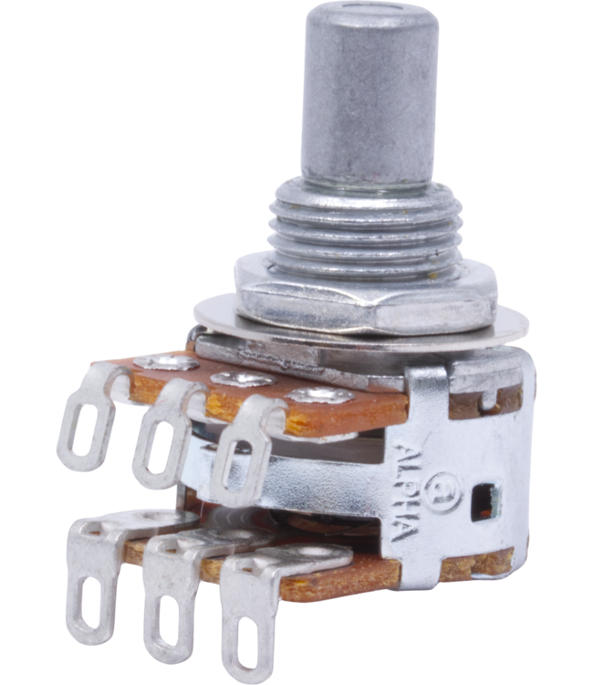 The Fender Alpha 250k Blend Pot is a high-quality potentiometer designed to balance or blend two pickup signals smoothly. Featuring an MN taper and center detent, this pot allows even transition between pickups, offering precise control and tonal flexibility. The solid shaft design ensures secure knob attachment and durable performance, making it an ideal choice for custom wiring setups or professional repairs.