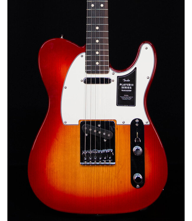 The Player II Telecaster radiates timeless Fender charm, but under the hood, it's primed for today's players. Everything about the neck is designed for fast and fluid playability, from the Modern “C”-profile with silky satin urethane finish on the back to the comfy 9.5”-radius slab rosewood or maple fingerboard with smooth rolled edges and 22 medium jumbo frets. Choose from alder, chambered ash or chambered mahogany bodies available in both classic Fender finishes and never-before-seen colors unearthed from the archives. Player Series Alnico V Single-Coil Tele® pickups offer crystalline highs, musical mids and tight lows that elevate any genre. The 3-way blade switch lets you dial in everything from smooth neck pickup chime to cutting bridge pickup twang and all points in between, while a 6-saddle bridge, block steel saddles and ClassicGear™ tuners ensure precise tuning stability for the flexibility to explore endless sonic possibilities.