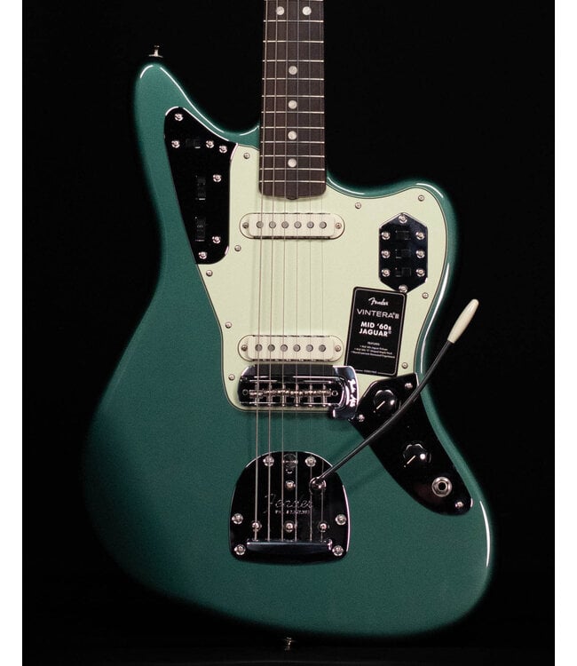 The Vintera III Mid ‘60s Jaguar features an alder body paired with a maple neck and rosewood fingerboard, producing the clear, punchy Fender tone players know and love. The mid ‘60s “C”-shaped neck offers a comfortable, familiar feel, while the 7.25" radius and vintage-tall frets provide a smooth, classic playing experience. Two vintage-style mid ‘60s single-coil pickups deliver the Jaguar’s signature sparkle and snap, with plenty of clarity and character. A vintage-style floating tremolo with tremolo lock allows for expressive vibrato, while the traditional rhythm circuit expands tonal options. Classic Jaguar appointments like the onboard mute and vintage-style tuning machines round out the look and keep everything performing reliably.
