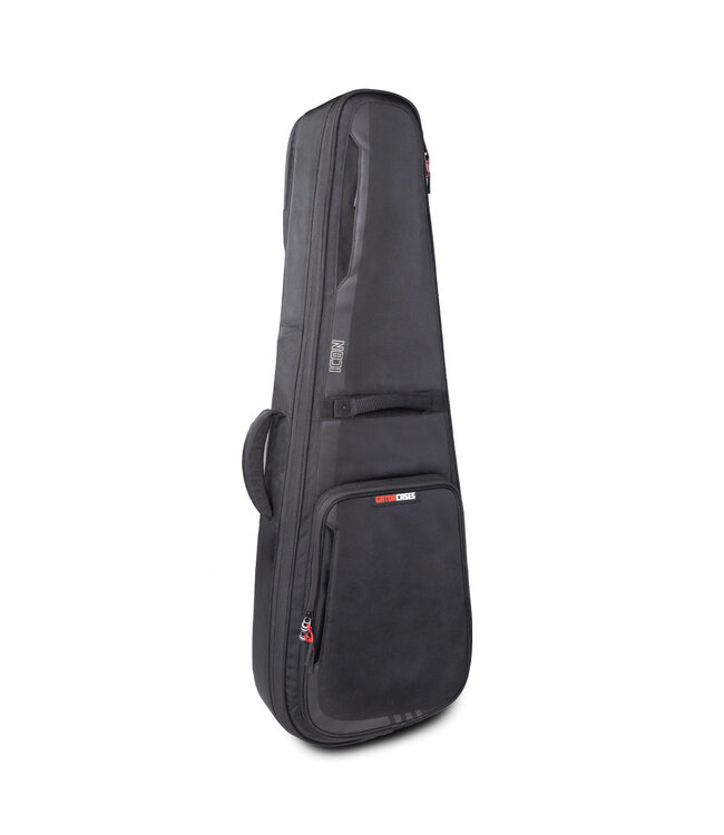 The ICON Series gig bag features a sleek design and is constructed from high-quality materials to ensure your guitar is well-protected from bumps and scratches. It has a padded interior to safeguard the instrument and includes multiple compartments for accessories. The ergonomic design and padded straps make it comfortable to carry, whether you're heading to a gig or practice.