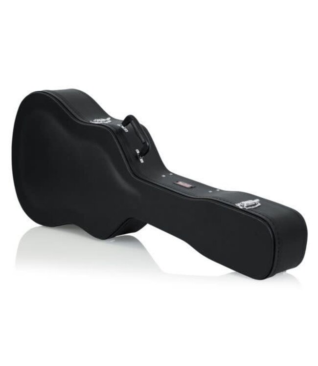The GWE-DREAD 12 Hard-Shell Wood Case for Dreadnought 12-String Guitars is lightweight with an arched top, and designed to protect against the minor bumps and bruises of daily use. Ultra-durable plywood coated in black Tolex PVC forms a moisture-resistant, impact-resistant outer barrier while plush fabric lining keeps your Dreadnought 12-String guitar snug. The large interior storage compartment fits all your essentials. Chrome plated lockable latches form a secure enclosure and the ergonomic carrying handle perfectly balances the case’s weight and gives you a comfy grip on your gear. Keep your 12-string guitar safe and sound with the Gator GWE-DREAD 12 hard-shell wood case.