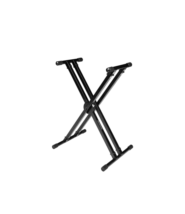 The Rok-It Double-X Keyboard Stand combines durability, convenience, and stability for musicians of all levels. Built with a heavy-duty, double-braced steel X-frame, this stand delivers exceptional strength and reliability, supporting up to 250 lb (113.4 kg) with ease. The ergonomic trigger height adjust mechanism allows for quick and seamless adjustments, making it effortless to switch between seated and standing playing positions. Designed for maximum stability, the stand features rubber sleeves and feet to prevent slipping, ensuring your keyboard and stand stay secure even during the most intense performances. Whether in the studio or on stage, the Rok-It Double-X Keyboard Stand is the ultimate blend of functionality and performance.