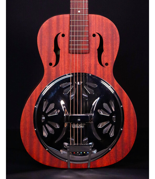 With its mahogany "long-body" design and comfortable "soft V"-shaped neck, this faithful reissue of the 1930s classic sounds and plays like a million bucks. The vital feature of all Gretsch resonator guitars is the Gretsch Ampli-Sonicâ„¢ diaphragm (resonator cone), which is hand-spun in Eastern Europe from nearly 99 percent pure aluminum, yielding an impressive quality and volume of tone.