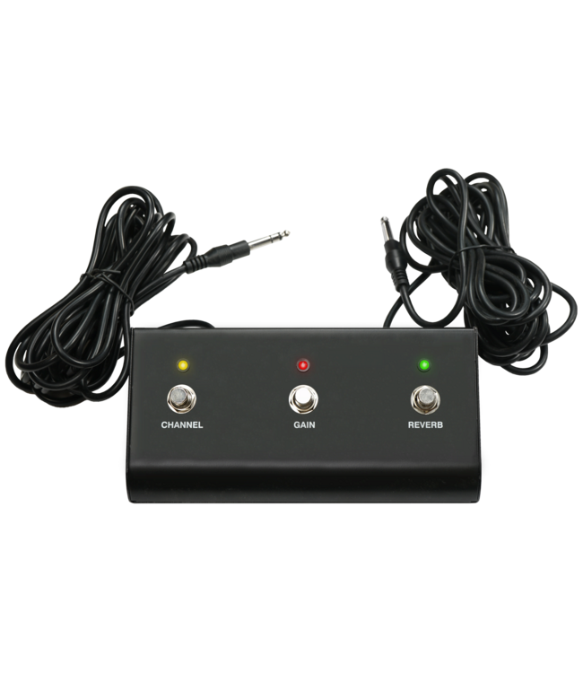 3 button footswitch for Hiwatt UK Designed amplifiers. Comes with hardwired 16ft 1/4" TS and TRS cables for connection to amplifier. Suitable for use with Crunch 150, Crunch 350, Super Leeds 150, and Super Leeds 300 amplifiers for channel-switching, gain mode, and reverb on/off functions.