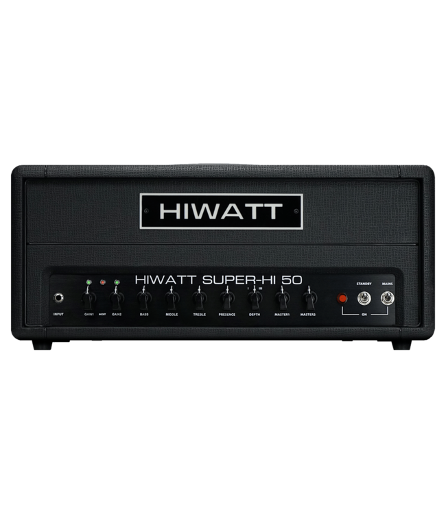 The Super-Hi 50 pairs the famously clean and responsive Hiwatt power section with a cascaded gain preamp. Based on the Custom Super-Hi amplifier, this circuit was designed to be the ultimate modern gain machine. Two channels with gain and volume controls, plus an independent 'Super Hi' boost to push them into meltdown, puts four levels of gain and volume at your disposal. With all that cascaded filth in the preamp, we added a clean and quiet post-preamp FX loop to keep your modulation and time-based effects clean and clear. A true gain monster.