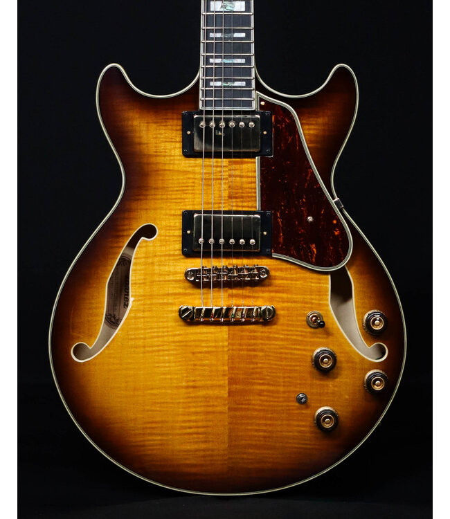 The Ibanez AM153FM Artstar Hollowbody in Antique Tobacco Burst delivers classic jazz box warmth in a compact, comfortable body size. Built for players who want rich, expressive tone without the bulk of a full-size hollowbody, this Artstar model blends traditional craftsmanship with modern playability. The flamed maple construction gives it a striking visual presence, while its articulate, warm voice makes it equally at home in jazz, blues, and classic rock settings.