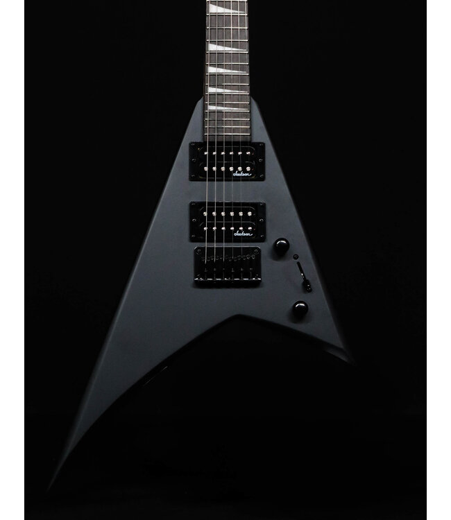 Other features include dual Jackson high-output humbucking pickups with three-way blade switching, single volume and tone controls, string-through-body hardtail bridge with block saddles and black hardware.