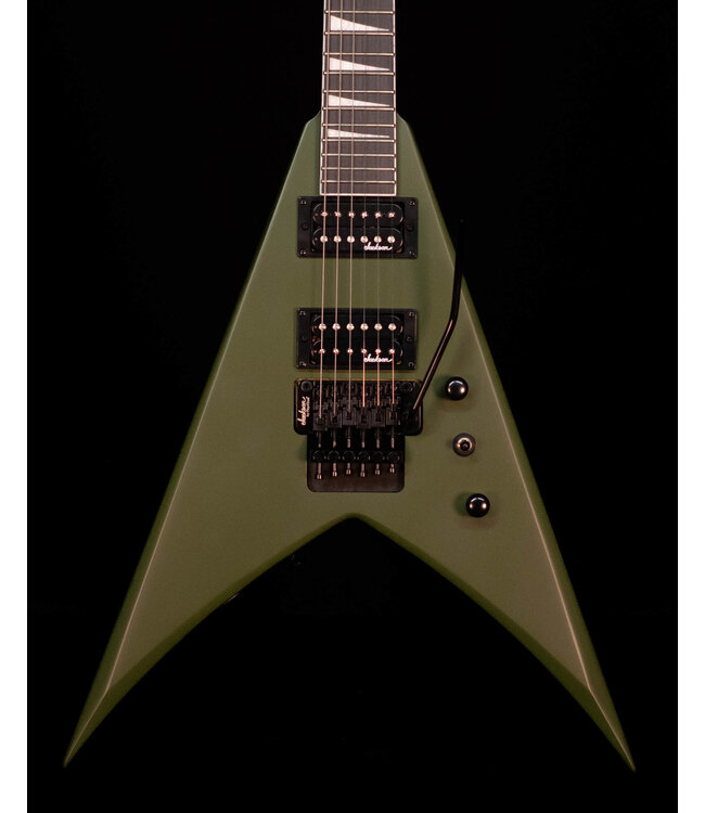 Other features include dual Jackson high-output humbucking pickups with ceramic magnets and three-way toggle switching, Jackson-branded Floyd Rose® double-locking tremolo bridge, standard strap buttons and sealed die-cast tuners.