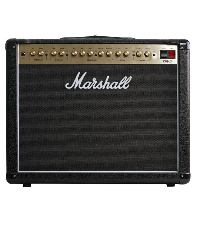 The Marshall DSL40CR is a powerful and versatile all-tube combo amplifier that delivers classic and modern Marshall tones in a gig-ready format. Featuring two channels (Classic Gain and Ultra Gain), the DSL40CR offers a wide tonal palette—from clean, articulate tones to aggressive high-gain distortion. With 40 watts of EL34-driven power and a Celestion V-Type 12" speaker, it’s perfect for stage or studio. Onboard digital reverb, an FX loop, and power scaling to 20W make it flexible for any playing environment.