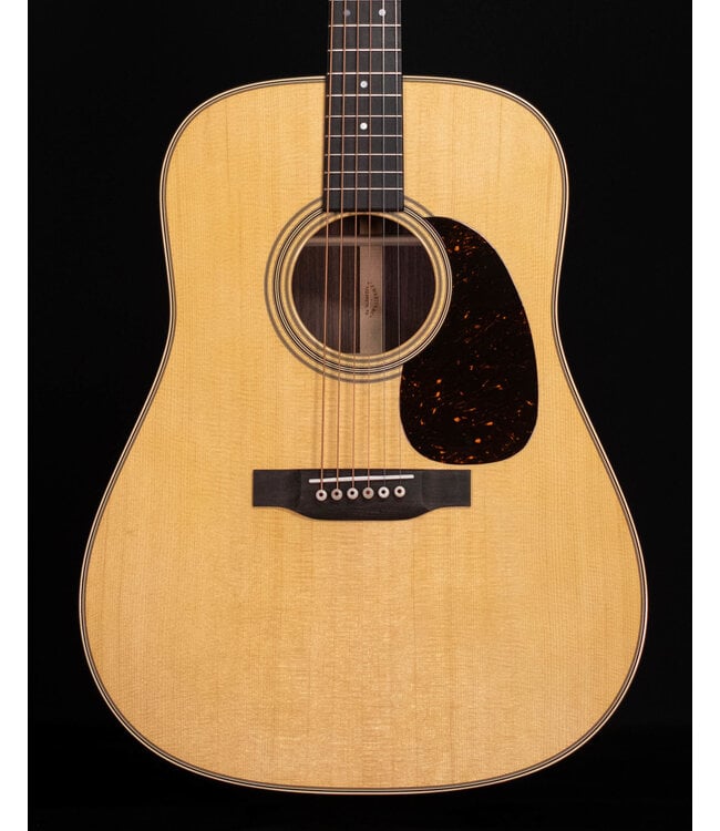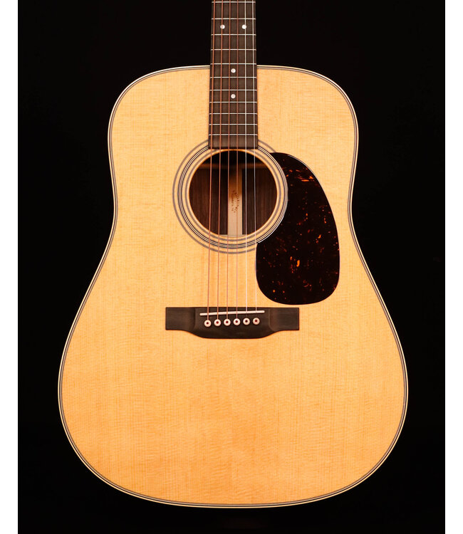 The satin neck, featuring a Golden Era (GE) Modified Low Oval profile, high-performance taper, and 25.4" scale length, ensures smooth, effortless playability. With antique white binding, an ebony fingerboard with mother of pearl dot inlays, an ebony bridge with bone pins, and nickel open gear tuners, the D-28 blends timeless craftsmanship with modern playability.