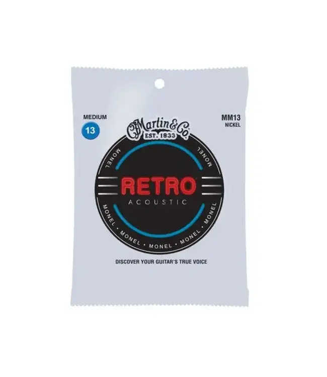 Retros are the original Nickel acoustic string all the way from the 1930s. Retro strings offer a uniquely mellow, yet crisp sound that allows your guitar’s natural tonewoods to be heard. They are crafted with Monel, a solid nickel/copper wrap wire - not nickel-plated - meaning there is no chance for defects in the plating to allow for corrosion. Martin’s proprietary wrap wire is naturally corrosion resistant and it is incredibly strong. We also employ a sophisticated winding process that controls the coupling between the core and wrap wire to maximize intonation.