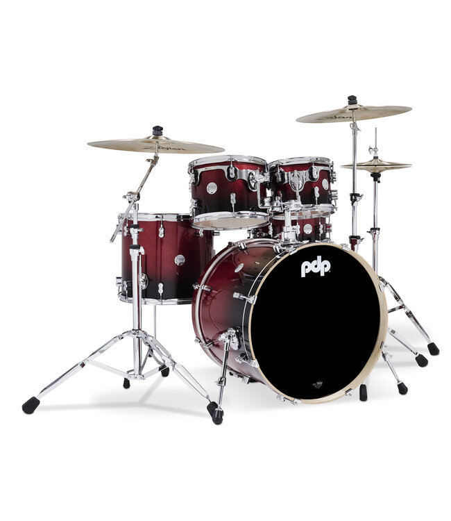 PDP Concept Maple 5-Piece Shell Pack, Red to Black Fade Lacquer w/Chrome Hardware; 8x10, 9x12, 14x16, 18x22, 5.5x14