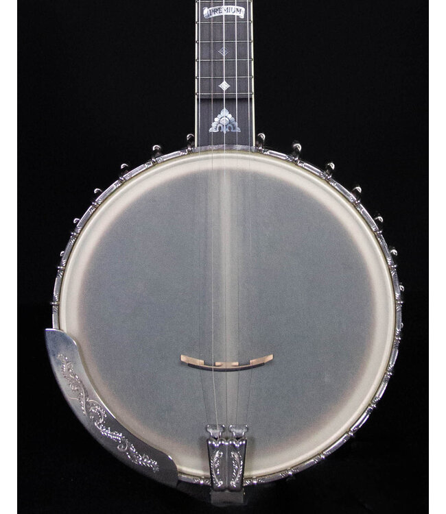 This instrument features a Tubaphone tone ring with bracket-band. All metal hardware which is nickel plated and beautifully engraved.Â