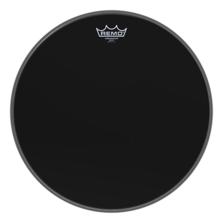 The Ambassador® Ebony® drumheads feature open resonant tones with a reflective black look. Constructed with 1-ply of 10-mil Ebony® film, Ambassador® Ebony® drumheads are ideal for batter and resonant heads for Toms and Bass Drums, and are the industry standard for Bass Drum resonant drumheads.
