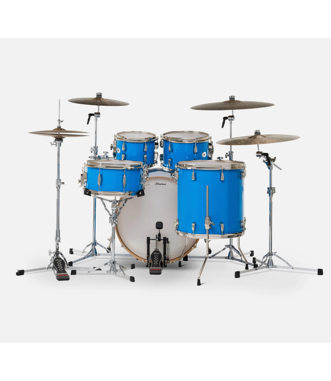 Based on a workhorse design from the studio era, the reborn Studio King Series features a 5-ply Maple-Poplar formula shell with 45-degree and 30-degree bearing edges that thrive under a studio mic and on the road. These shells produce a focused attack, warm and versatile tone with medium resonance. The drums feature Nickel-plated hardware with Stick Saver hoops, classic Beavertail lugs, heavy-duty 1/2″ inch floor tom legs, and road-ready folding bass drum spurs. This configuration includes 7x10″ and 8x12″ toms, 16x16″ floor tom, 16x22″ bass drum, and 6.5x14″ snare drum. *