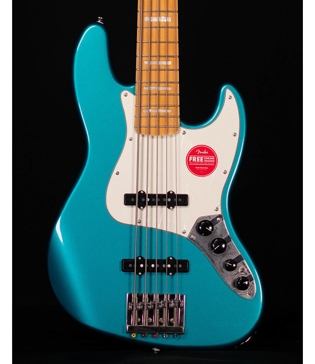 The Classic Vibe™ Active ’70s Jazz Bass® V draws its inspiration from the infamous basses that defined the funky tones of the 1970s, adding an onboard preamp for the ultimate combination of vintage looks and modern performance. Powering this Squier® 5-string groove machine is a pair of Fender Designed™ alnico Noiseless™ J Bass® pickups for punchy hum-free signal. The 9-volt preamp provides controls for volume, pickup blend, treble and bass boost, and a toggle to switch between active and passive for complete tone-shaping control. Other details include a HiMass™ bridge for optimal resonance, a striking bound fingerboard with block inlays, rich-looking nickel-plated hardware and a slick vintage-tinted gloss neck finish for an old-school vibe.
