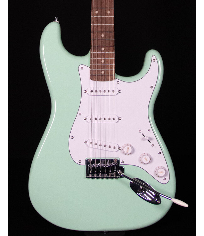 A superb gateway into the time-honored Fender® family, the Squier® Affinity Series™ Stratocaster® delivers legendary design and quintessential tone for today’s aspiring guitar hero. This Strat® features several player-friendly refinements such as a thin and lightweight body, a slim and comfortable “C”-shaped neck profile, a 2-point tremolo bridge for superior tremolo action and sealed die-cast tuning machines with split shafts for smooth, accurate tuning and easy restringing. Loaded with a trio of Squier single-coil Strat pickups with 5-way switching for genre-defying sonic variety, this model is ready to accompany any player at any stage.