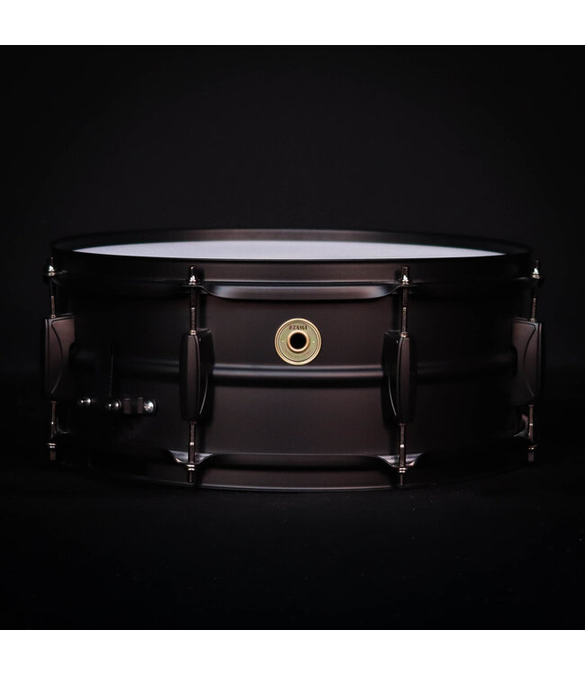 This steel snare drum offers a bright tone with a tight crispness in high-tuning and a smooth resonance in low-tuning. A 1.2mm matte black steel shell is processed to have a ridge on the center of the shell as reinforcement. The color of the shell hardware is matched to the matte black shell.