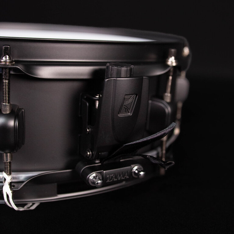This steel snare drum offers a bright tone with a tight crispness in high-tuning and a smooth resonance in low-tuning. A 1.2mm matte black steel shell is processed to have a ridge on the center of the shell as reinforcement. The color of the shell hardware is matched to the matte black shell.