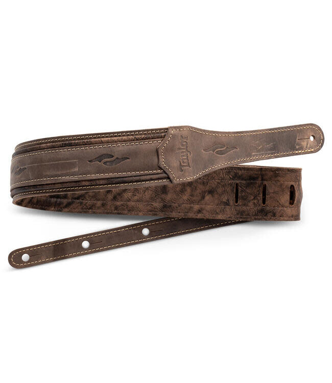The Taylor Element Distressed Leather Guitar Strap perfectly embodies the enduringly popular distressed leather look. This rustic strap features a rich multilayered dark brown coloring, detailed with Element designs to make it a perfect match for any 800 Series Taylor. This strap is available in widths of 2.5 and 3”, providing the perfect balance of comfort and support. It’s capped off with a gold embossed Taylor logo. Made in the USA.