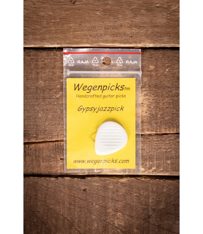 Introducing the Wegen GJP 3.5mm Gypsyjazzpick in a sleek white color. Specifically designed for gypsy jazz guitar players, this single pick offers remarkable thickness and durability. With its substantial 3.5mm thickness, it delivers a solid and powerful feel, perfect for dynamic playing. The pick features a comfortable grip and a smooth surface for effortless string contact and precise articulation. Crafted with Wegen's renowned quality and attention to detail, this pick is built to withstand the demands of gypsy jazz playing. Elevate your gypsy jazz performance with the Wegen GJP 3.5mm Gypsyjazzpick – a reliable, thick, and stylish companion for your guitar.
